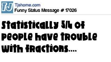 - # 15040 Statistically 5/4 of peoplehave trouble with fractions.