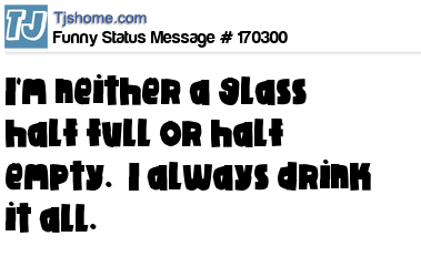 X is I'm neither a glass half full or half empty. I always drink it all.