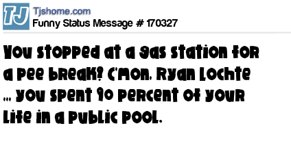 X says You stopped at a gas station for a pee break? C'mon, Ryan Lochte ,,, you spent 90 percent of your life in a public pool.