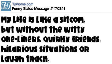 X says My life is like a sitcom, but without the witty one-liners, quirky friends, hilarious situations or laugh track.