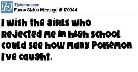 - # 169647 Wish the girls who rejected me in High School could see how many Pokemon I've caught.