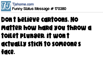X says Don’t believe cartoons. No matter how hard you throw a toilet plunger, it won’t actually stick to someone’s face.