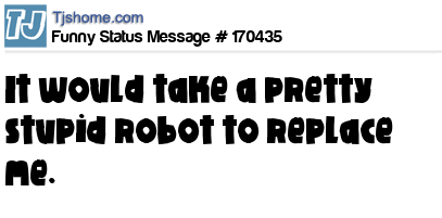 - # 174780 ....... Rise of the Machines!!!! I just got replaced by a freakin Robot!!!! Well ... Technically my wife bought a vibrator but I still call it a Freakin Robot!