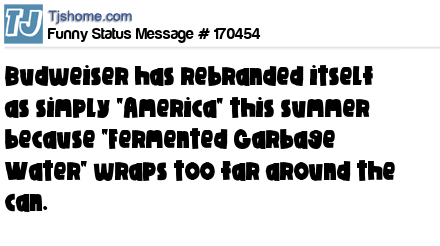 X says Budweiser has rebranded itself as simply "America" this summer because "Fermented Garbage Water" wraps too far around the can.