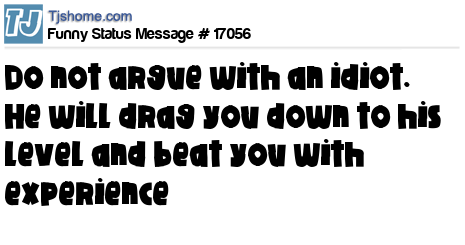 - # 23570 Do not argue with an idiot. He will drag you down to his level and beat you with experience.