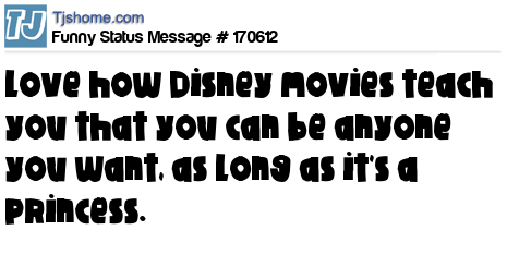 X says Love how Disney movies teach you that you can be anyone you want, as long as it's a princess.