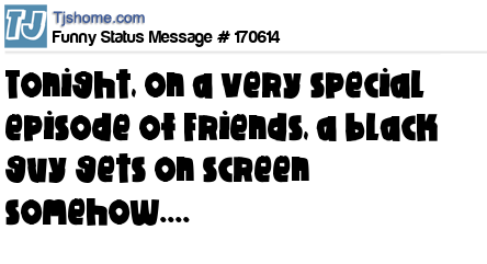 X says Tonight, on a very special episode of Friends, a black guy gets on screen somehow....