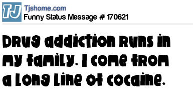X says Drug addiction runs in my family. I come from a long line of cocaine.