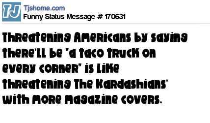 X says Threatening Americans by saying there'll be "a taco truck on every corner" is like threatening The Kardashians' with more magazine covers.