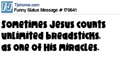 X says Sometimes Jesus counts unlimited breadsticks, as one of His miracles.
