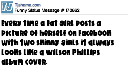 X says Every time a fat girl posts a picture of herself on Facebook with two skinny girls it always looks like a Wilson Phillips album cover.