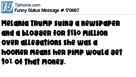 X says Melania Trump suing a newspaper and a blogger for $150 million over allegations she was a hooker means her pimp would get 90% of that money.