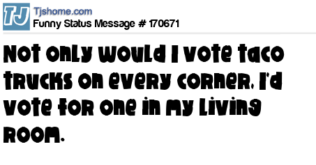 X says Not only would I vote taco trucks on every corner, I'd vote for one in my living room.