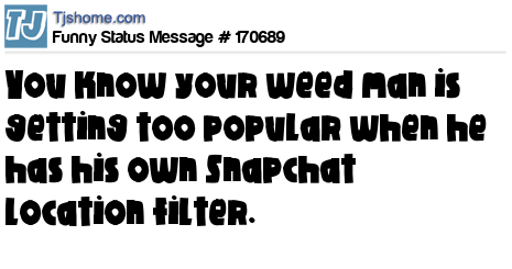 X says You know your weed man is getting too popular when he has his own Snapchat location filter.