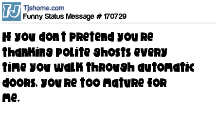 X says If you don’t pretend you’re thanking polite ghosts every time you walk through automatic doors, you’re too mature for me.