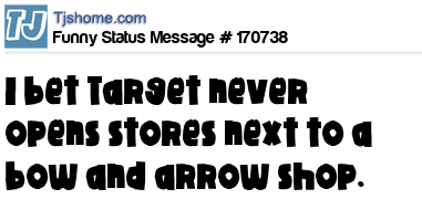X says I bet Target never opens stores next to a bow and arrow shop.