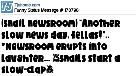 X says (snail newsroom) "Another slow news day, fellas?".. *Newsroom erupts into laughter... {snails start a slow-clap}