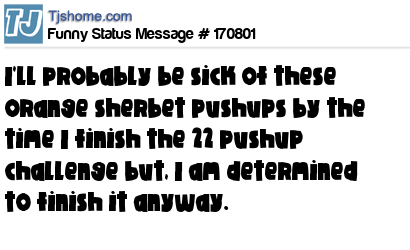 X says I'll probably be sick of these orange sherbet pushups by the time I finish the 22 pushup challenge but, I am determined to finish it anyway.
