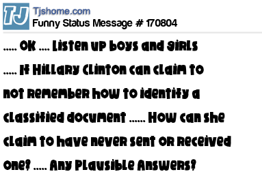X ..... OK .... Listen up boys and girls ..... If Hillary Clinton can claim to not remember how to identify a classified document ...... How can she claim to have never sent or received one? ..... Any Plausible Answers?