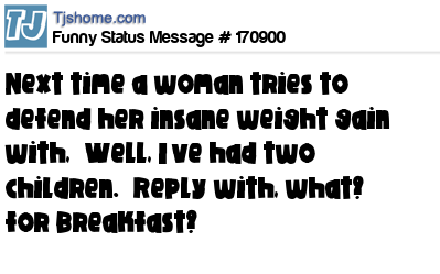 X Next time a woman tries to defend her insane weight gain with, “Well, I’ve had two children.” Reply with, what? for Breakfast?”