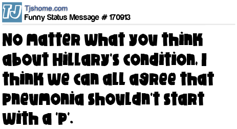 X says No matter what you think about Hillary's condition, I think we can all agree that pneumonia shouldn't start with a 'p'.