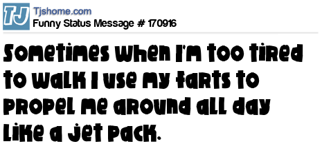 X says Sometimes when I'm too tired to walk I use my farts to propel me around all day like a jet pack.