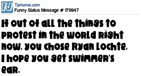 X says If out of all the things to protest in the world right now, you chose Ryan Lochte, I hope you get swimmer's ear.