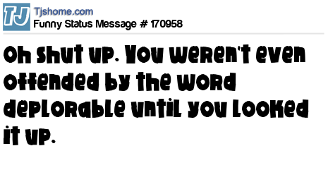 X says Oh shut up. You weren't even offended by the word deplorable until you looked it up.