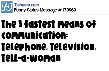 X says The 3 fastest means of communication: Telephone, Television, Tell-a-woman