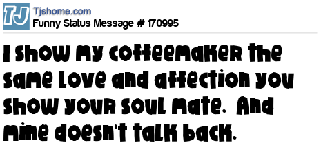 X says I show my coffeemaker the same love and affection you show your soul mate. And mine doesn't talk back.