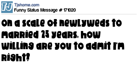 X says On a scale of newlyweds to married 25 years, how willing are you to admit I'm right?