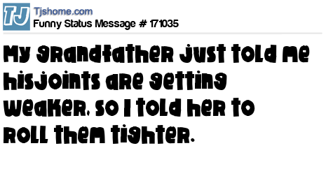 X says My grandfather just told me hisjoints are getting weaker, so I told her to roll them tighter.