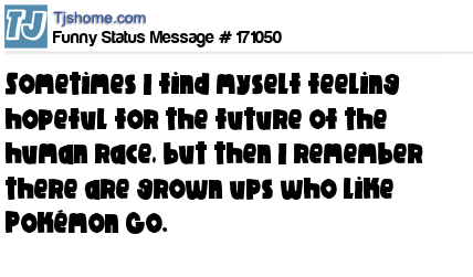 X says Sometimes I find myself feeling hopeful for the future of the human race, but then I remember there are grown ups who like Pokémon Go.