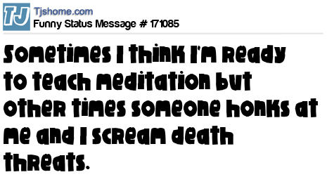 X says Sometimes I think I'm ready to teach meditation but other times someone honks at me and I scream death threats.
