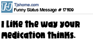 - # 100213 SO! My Dr tells me I have to take medication. Why? To stop you from slapping people who should be on medication. Hmmmm!