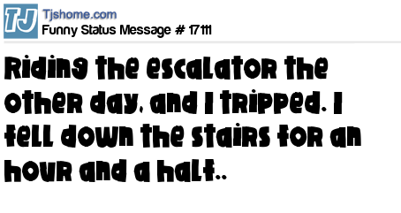 - # 33429 was riding the escalator the other day, and I tripped. I fell down the stairs for an hour and a half..