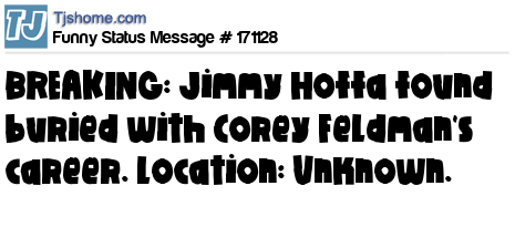 X says BREAKING: Jimmy Hoffa found buried with Corey Feldman's career. Location: Unknown.