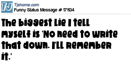 X says The biggest lie I tell myself is 'No need to write that down. I'll remember it.'
