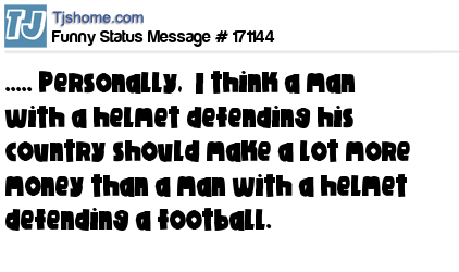 - # 164531 I think a man with a helmet defending his country should make more money than a man with a helmet defending a football.