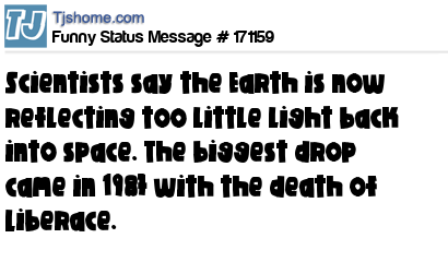 X says Scientists say the Earth is now reflecting too little light back into space. The biggest drop came in 1987 with the death of Liberace.