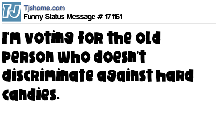X says I'm voting for the old person who doesn't discriminate against hard candies.