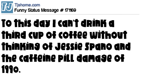 X says To this day I can't drink a third cup of coffee without thinking of Jessie Spano and the caffeine pill damage of 1990.