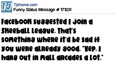 X says Facebook suggested I join a Skeeball league. That's something where it'd be sad if you were already good. "Yep, I hang out in mall arcades a lot."