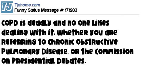 X COPD is deadly and no one likes dealing with it, whether you are referring to Chronic Obstructive Pulmonary Disease, or the Commission On Presidential Debates.