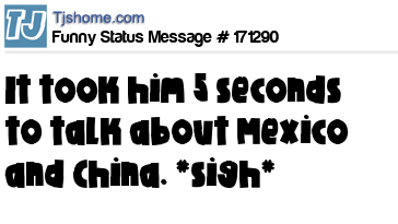 X says It took him 5 seconds to talk about Mexico and China. *sigh*
