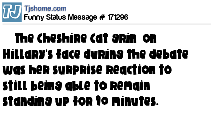 X says The Cheshire Cat grin on Hillary's face during the debate was her surprise reaction to still being able to remain standing up for 90 minutes.