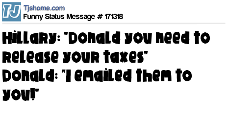 X says Hillary: "Donald you need to release your taxes" Donald: "I emailed them to you!"