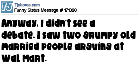 X Anyway, I didn't see a debate. I saw two grumpy old married people arguing at Wal Mart.