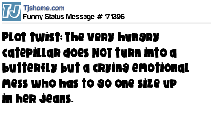 X says Plot twist: The very hungry catepillar does NOT turn into a butterfly but a crying emotional mess who has to go one size up in her jeans.