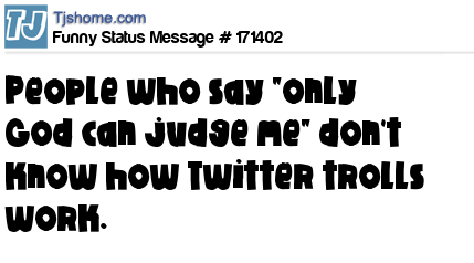 X says People who say "only God can judge me" don't know how Twitter trolls work.